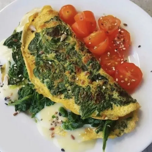 Corta el kale en tiras y saltéalo con la cebolla y el ajo en una sartén con aceite de oliva durante 3-5 minutos. Bate los huevos con sal, pimienta y cúrcuma. Mezcla con el kale y cocina a fuego bajo hasta que la tortilla esté lista.